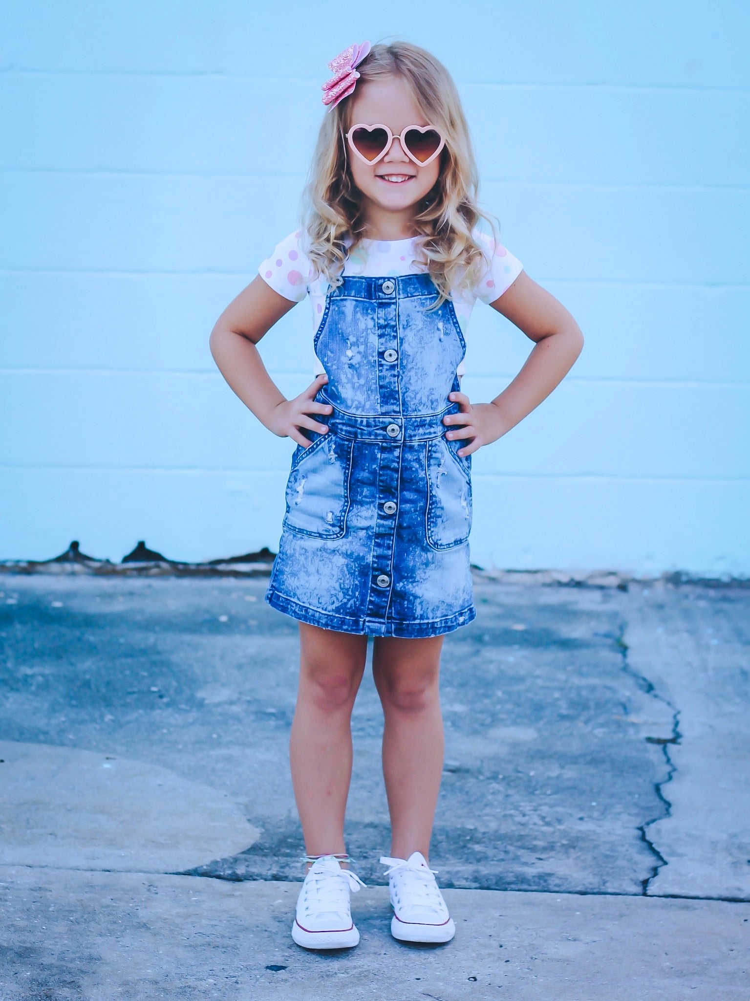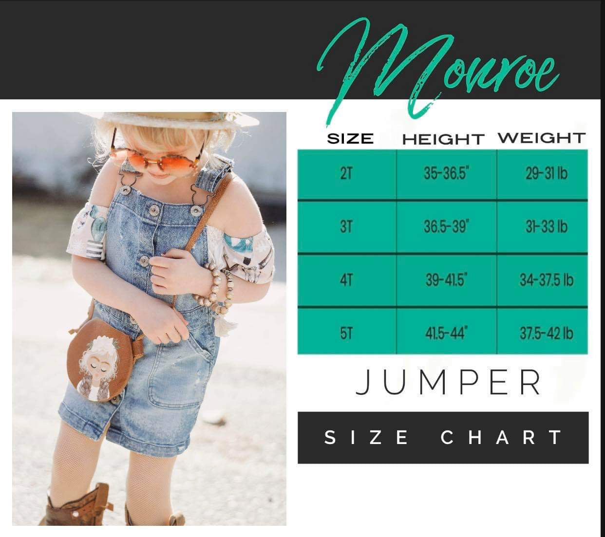 Our Monroe Jumper is one of our favorite denim pieces! This custom distressed jumper is perfect for your little. Definitely a closet staple in any babes wardrobe!